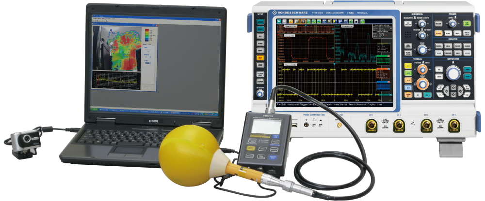 1.大小各種尺寸都可以測定:通過更換電磁場探頭可以對從基板到大型設備各種尺寸進行測定。另外,可通過攝像頭的配置等對複雜形狀物體等進行測試。