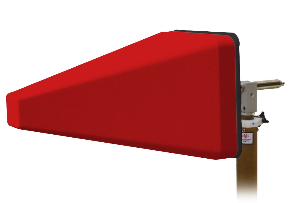 適合在微波頻率範圍進行輻射耐受性測試與干擾測量的雙堆疊對數週期天線。