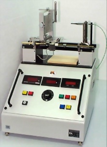 點火源通過電熱線環來模擬,樣品以恆定的力壓在該環上。微型夾套熱電偶感測線來測量溫度。樣品固定在一個滑架上,通過伸緊繩索的裝置,用1N的力往電熱線環的方向移動。標尺可以讀取火焰高度和穿透深度。電熱線環下方大約200mm處安裝松木板,覆有一層薄紙。該裝置能夠判斷燃燒滴落物或從樣品上掉下的灼熱部件導致燃燒的危險。